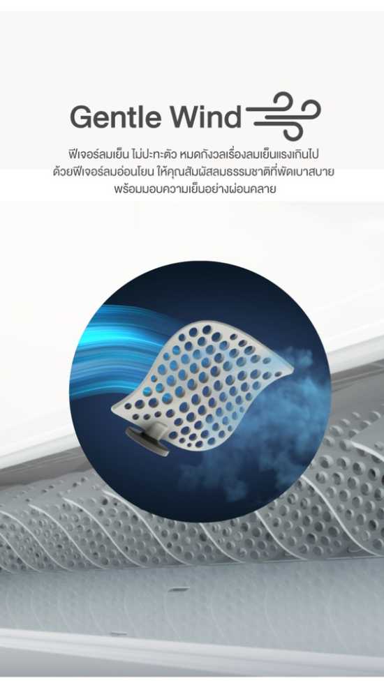 ❄ Gentle Wind ฟีเจอร์ลมเย็น 4 ทิศทาง พร้อมใบพัด 1,422 รู กระจายแรงลมอ่อนโยนให้ไม่ปะทะตัว